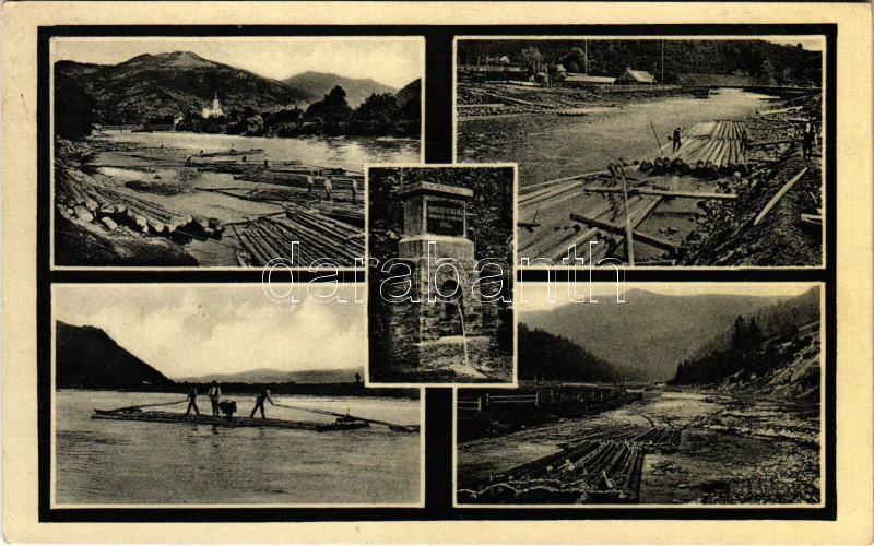 Description: 1939 Kőrösmező, Körösmező, Yasinia, Yasinya, Jaszinya, Jassinja, Jasina; Pramen C. Tisy a vory na C. Tise / faszállító tutajosok a Tiszán / timber rafters (EK)