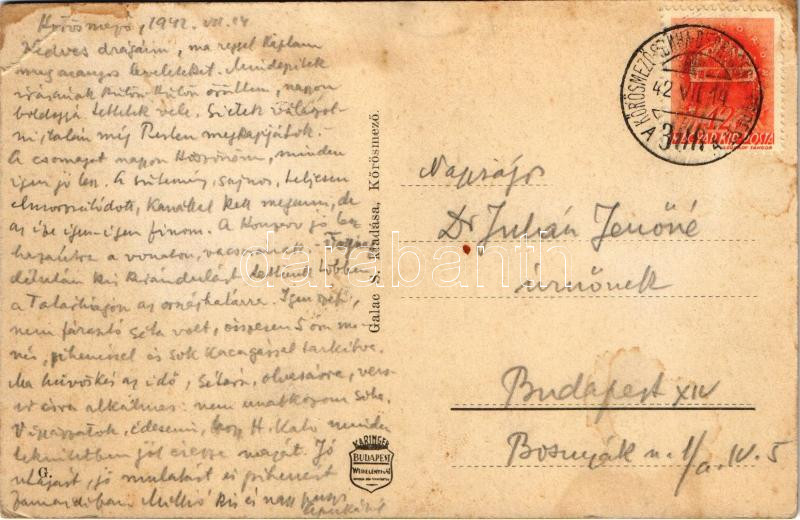 Description: 1942 Kőrösmező, Körösmező, Jaszinya, Jasina, Yasinia; Őrház az 1000 éves magyar határon, Tatárhágó. Galac S. kiadása / guard house on the Hungarian border, mountain pass + "KŐRÖSMEZŐ-DEBRECEN-BUDAPEST 306." vasúti mozgóposta (EB)
