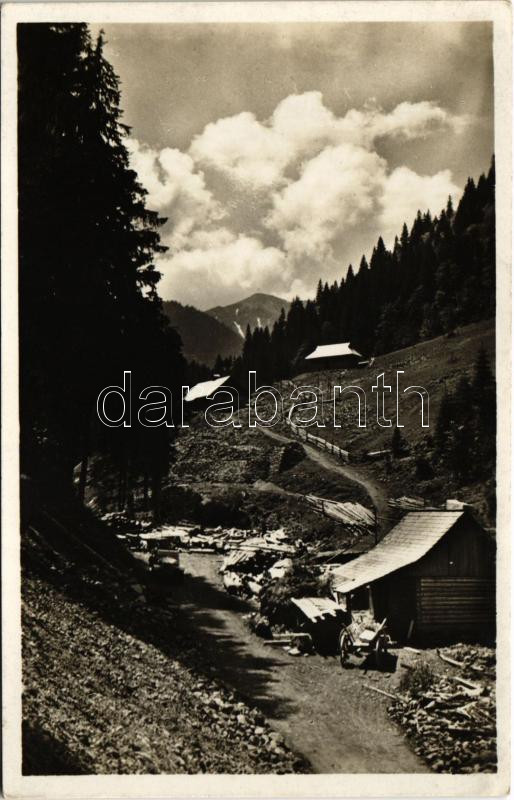 Kőrösmező, Yasinia, Yasinya, Jaszinya, Jassinja, Jasina; Jasina-Bohdan, Údoli Kvasny a Pop Ivan / völgy, fatelep, fűrésztelep, automobil. S. Galac kiadása / valley, lumber yard, automobile