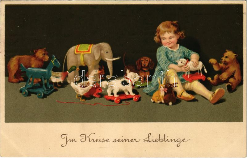 1914 Im Kreise seiner Lieblinge / Kislány babákkal / Girl with dolls. ...