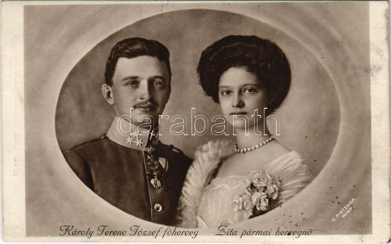 1916 Károly Ferenc József főherceg és Zita pármai hercegnő / Charles I of Austria and Zita. C. Pietzner, Wien + "IV. Károly király koronázása napján 1916. dec. 30." So. Stpl. (fl)