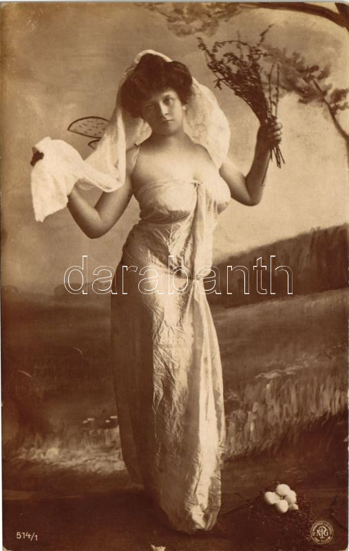 1906 Finoman erotikus húsvéti hölgy / Gently erotic Easter lady. NPG 5...