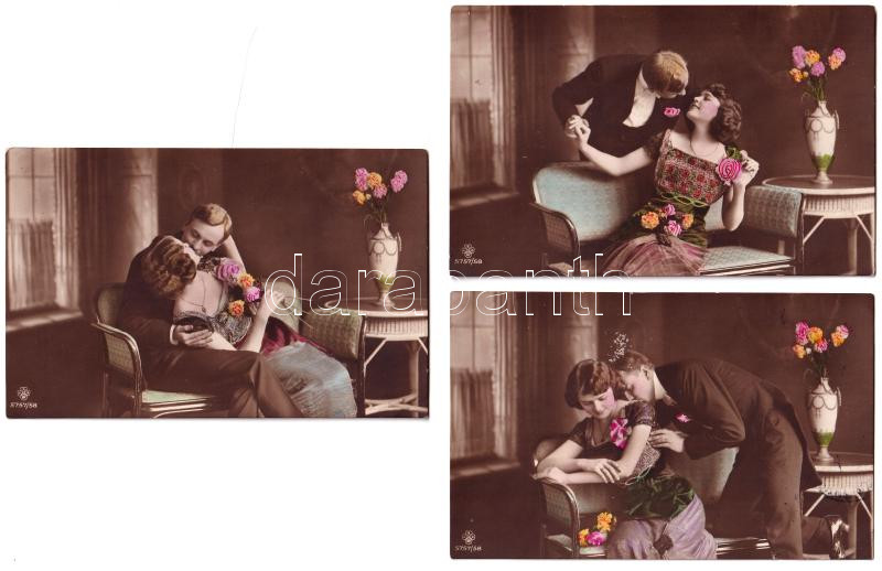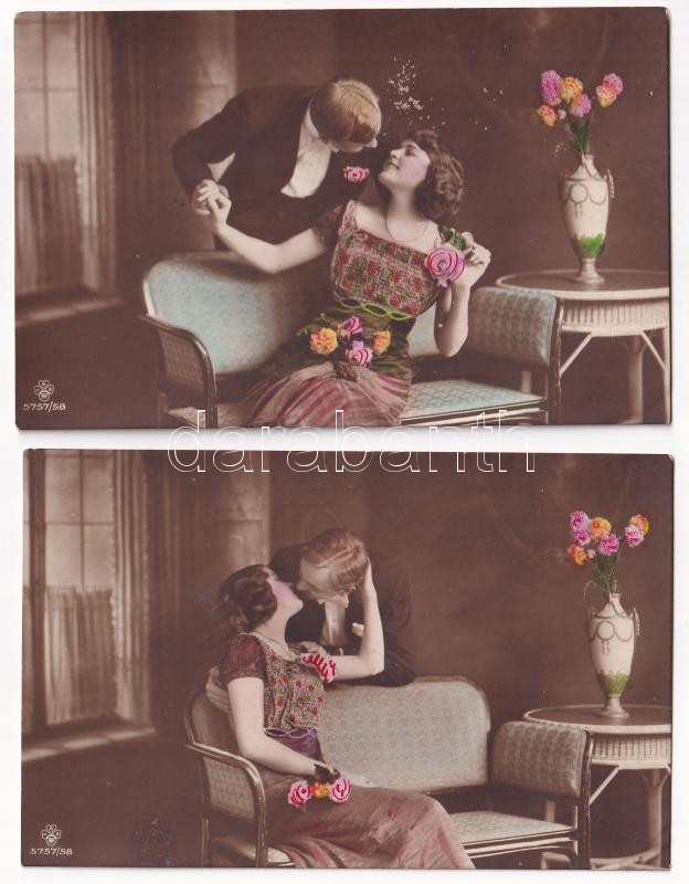 5 db RÉGI finoman erotikus képeslap csókolózó párral / 5 pre-1915 gently erotic postcards with kissing couples