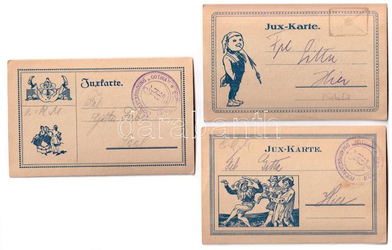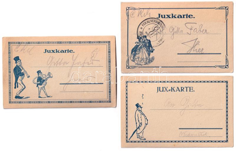 6 db századforduló környéki erotikus pornográf kézzel rajzolt képeslap, Jux-Karte lapokra kasírozva / 6 1900-era erotic pornographic hand-drawings on Jux-Karte postcards