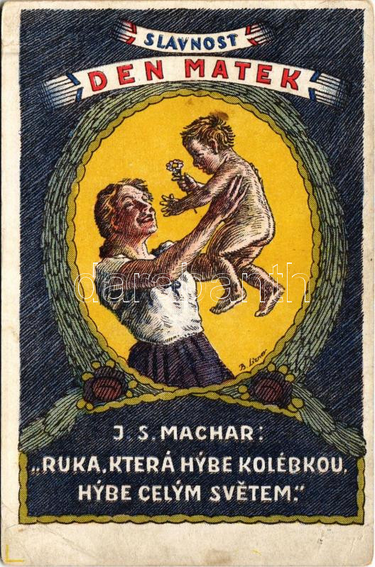 Description: 1926 Slavnost Den Matek. J.S. Machar: Ruka, Která hybe kolébkou, hybe celym svetem. / Cseh anyák napi üdvözlet / Czech Mother's Day greeting s: B. Lizner (EK)