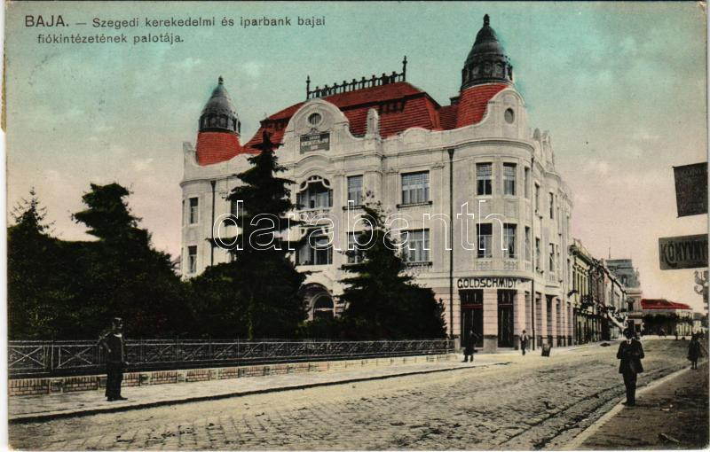 1915 Baja, Szegedi kereskedelmi és iparbank fiókintézetének palotája. ...