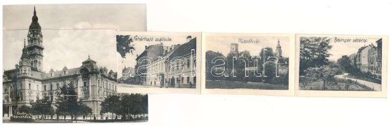 1930 Győr, Városháza. leporellólap 10 képpel, közte vasútállomás