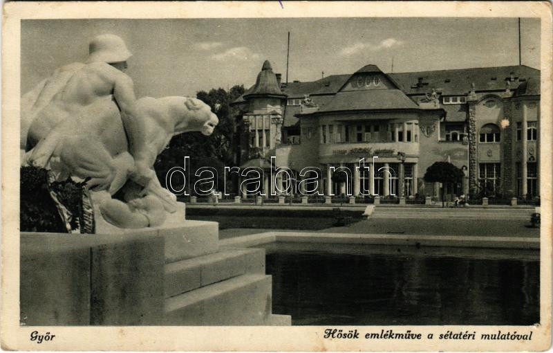 1942 Győr, Hősök emlékműve a sétatéri mulatóval (EK)