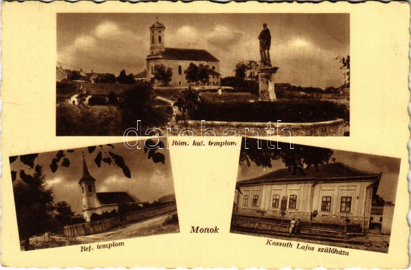 https://www.darabanth.com/en/437-Online-auction/437.0/Postcards/Hungary~1500005/1942-Monok-Romai-katolikus-es-reformatus-templom-Kossuth-Lajos-szulohaza~II2840420