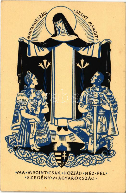 Description: "Ma megint csak hozzád néz fel Szegény Magyarország" Szent Margit. Kiadja Máriatársulat Központja. Laiszky Jenő nyomda / Hungarian irredenta propaganda s: Pál