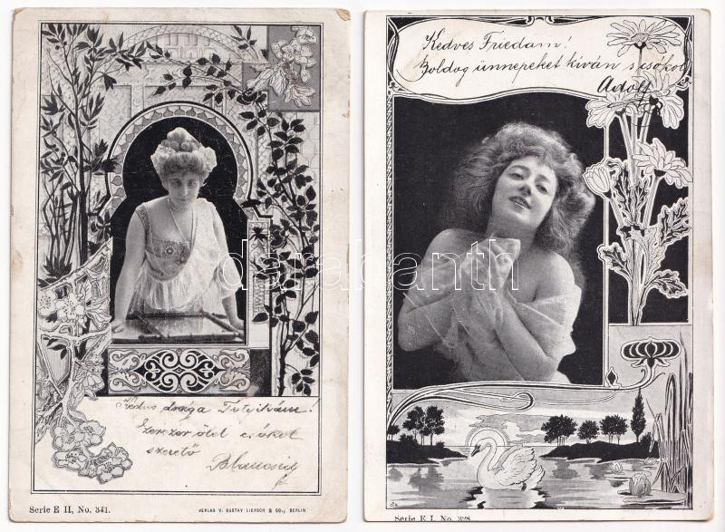 HÖLGYEK - 12 db századfordulós szecessziós képeslap vegyes minőségben / LADIES - 12 pre-1905 Art Nouveau postcards in mixed quality