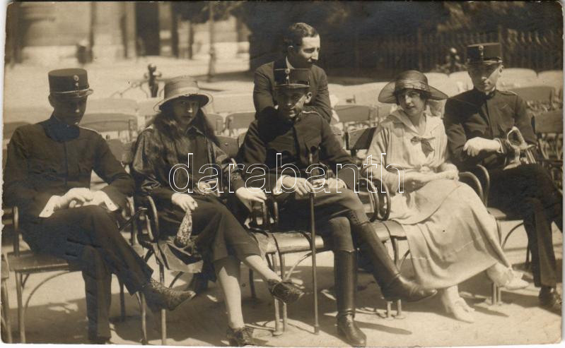 1918 Osztrák-magyar katonák hölgyekkel / WWI Austro-Hungarian K.u.K. military, soldiers with ladies. photo (vágott / cut)