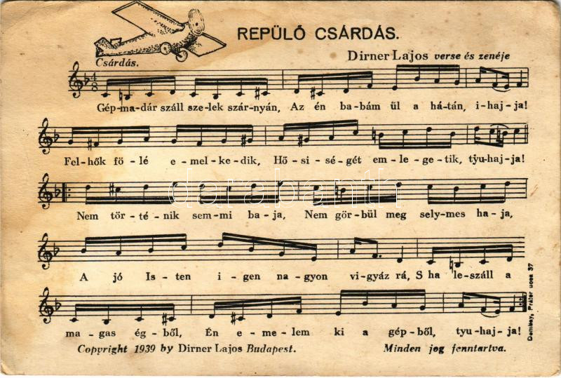 https://www.darabanth.com/en/437-Online-auction/437.0/Postcards/Militaria~1500058/1943-Repulo-Csardas-Dirner-Lajos-verse-es-zeneje-Katonai-kottas-kepeslap-fl~II2837472