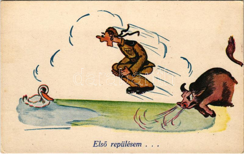 "Első repülésem..." Humoros magyar katonai művészlap / Hunga...