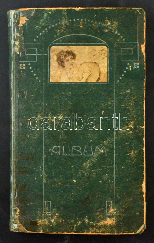 Múlt századfordulós képeslap album, benne kb. 270 régi képeslap: motívumok, művészeti lapok, közte sok Stengel