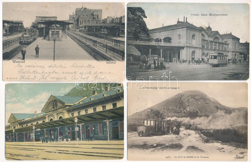 4 db RÉGI vonat motívum képeslap: pályaudvar, vasútállomás / 4 pre-194...