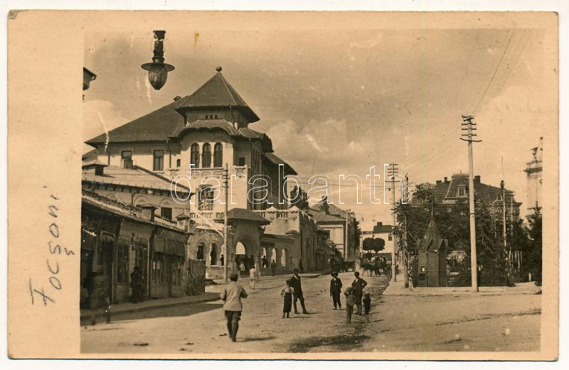 1918 Focsani, Foksány; street view, shops, restaurant and beer hall. p...