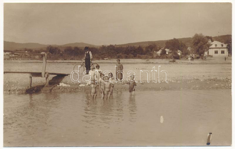 1924 Moreni, Badende Kindern in die Krikov (Cricov) / bathing children in the Cricov river. photo (cut)