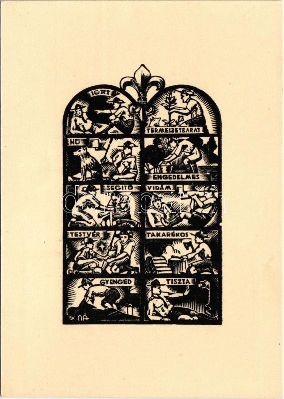 A cserkész tízparancsolata. Nagy Árpád eredeti fametszete után. Felelő... https://www.darabanth.com/en/437-Online-auction/437.0/Postcards/Scout~1500025/A-cserkesz-tizparancsolata-Nagy-Arpad-eredeti-fametszete-utan-Felelos-kiado-Hanzely-Hung~II2849301