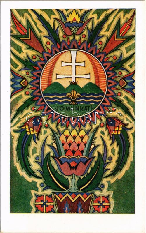 Jó munkát! Budapesti 25. Szent Imre öregcserkészcsapat / Hungarian old boys scouts, senior scouts art postcard s: Megyer Meyer Attila