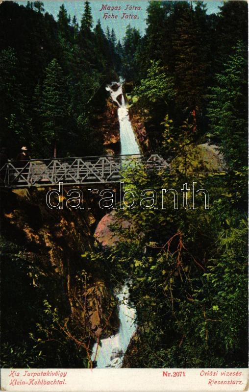 Tátra, Magas-Tátra, Vysoké Tatry; Kis Tarpatakvölgy, Óriási vízesés. Franz Pietschmann Nr. 2071. / Klein-Kohlbachtal, Riesensturz / waterfall