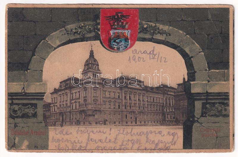 https://www.darabanth.com/en/437-Online-auction/437.0/Postcards/Transylvania~1500006/1902-Arad-Csanadi-palota-Szecesszios-cimeres-litho-keret-palace-Art-Nouveau-coat-of-arms-li~II2839713