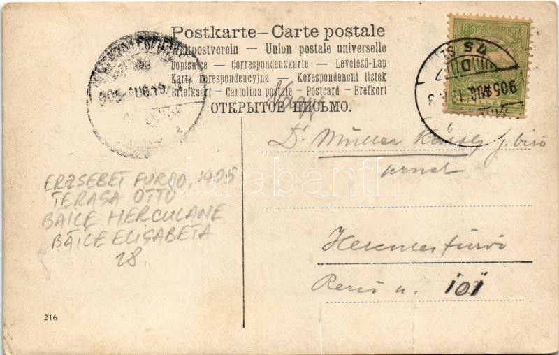 https://www.darabanth.com/en/437-Online-auction/437.0/Postcards/Transylvania~1500006/1905-Herkulesfurdo-Herkulesbad-Baile-Herculane-Erzsebet-furdo-kavehaz-es-vendeglo-s~II2850460
