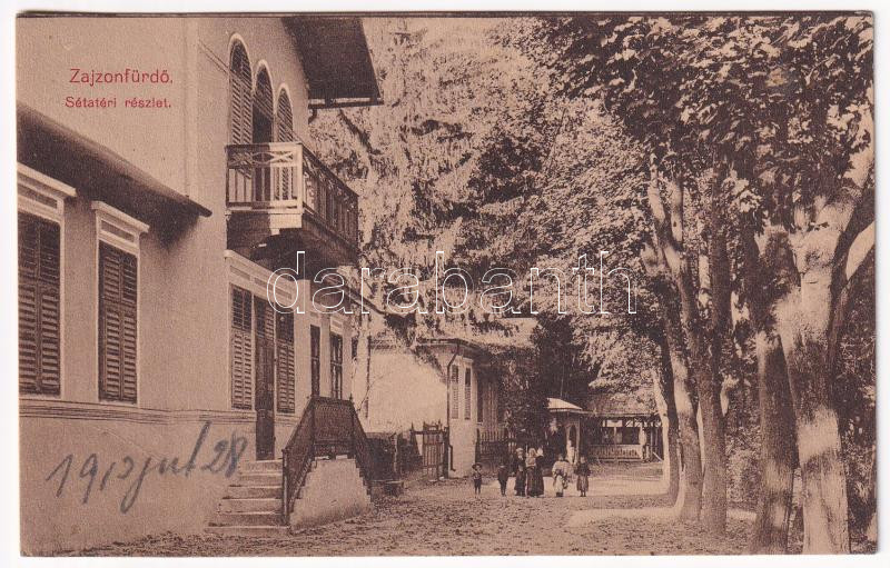 1913 Zajzon, Zaizon-fürdő, Zajzonfürdő, Zizin; Sétatéri részlet / prom...