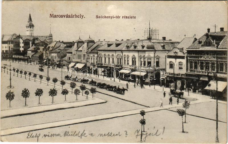 1914 Marosvásárhely, Targu Mures; Széchenyi tér, üzletek. Porjes S. Sándor kiadása / square, shops (EK)