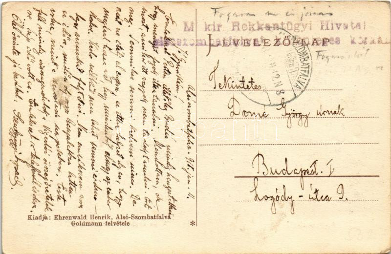 1915 Alsószombatfalva, Alsó-Szombatfalva, Sambata de Jos; Rokkant tele... https://www.darabanth.com/en/437-Online-auction/437.0/Postcards/Transylvania~1500006/1915-Alsoszombatfalva-Also-Szombatfalva-Sambata-de-Jos-Rokkant-telep-kapu-bejarat-Ehrenwald-~II2848096