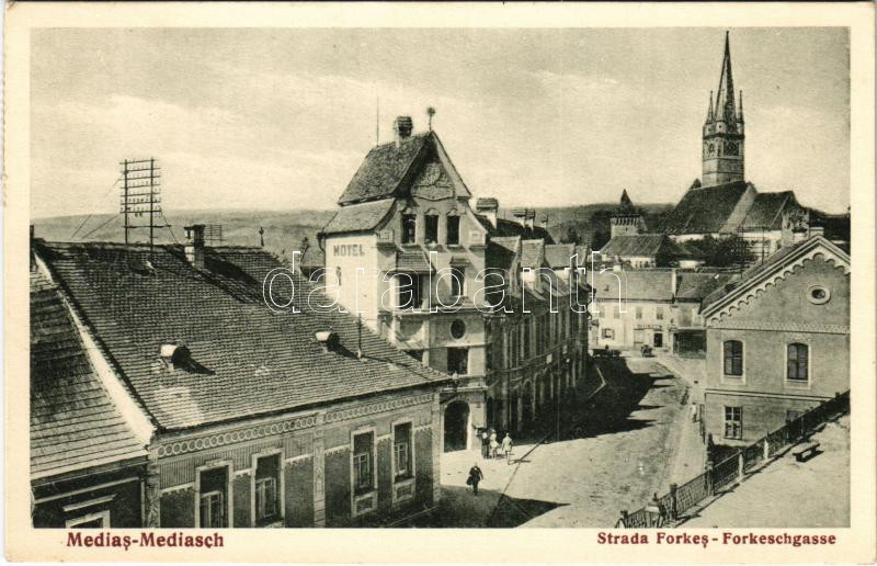 https://www.darabanth.com/en/437-Online-auction/437.0/Postcards/Transylvania~1500006/1938-Medgyes-Mediasch-Medias-Strada-Forkes-Forkeschgasse-utca-szalloda-E-Fischer-kiadasa~II2854865