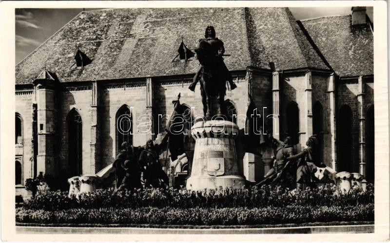 1940 Kolozsvár, Cluj; Mátyás király szobor / statue (gyűrődések / creases)