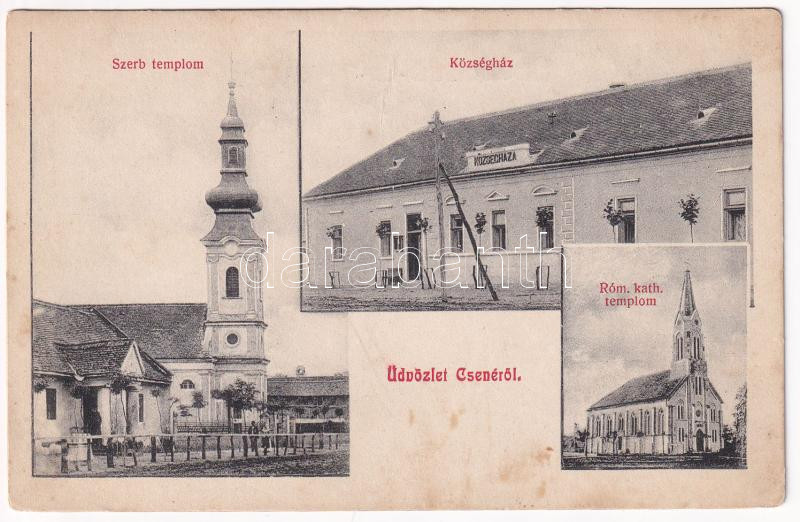 https://www.darabanth.com/en/437-Online-auction/437.0/Postcards/Transylvania~1500006/Csene-Tschene-Cenej-Cenei-szerb-es-romai-katolikus-templom-kozseghaza-churches-town-hal~II2848982