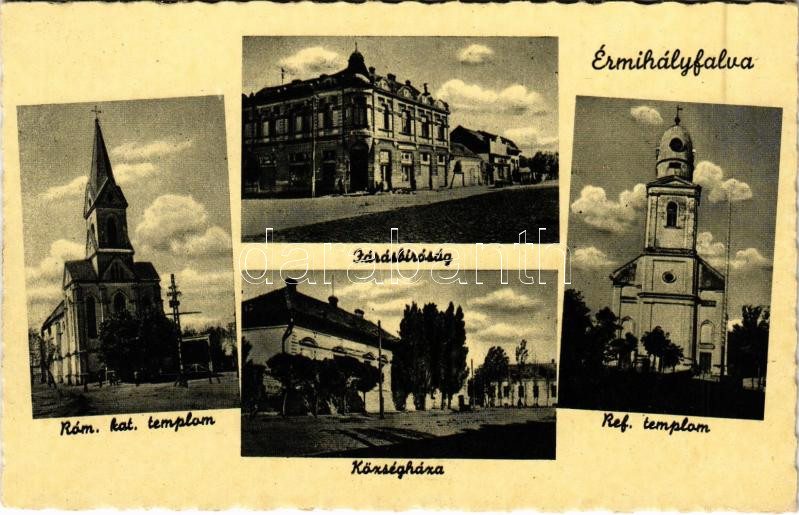 Érmihályfalva, Valea lui Mihai; Római katolikus és református templom, járásbíróság, községháza / churches, court, town hall