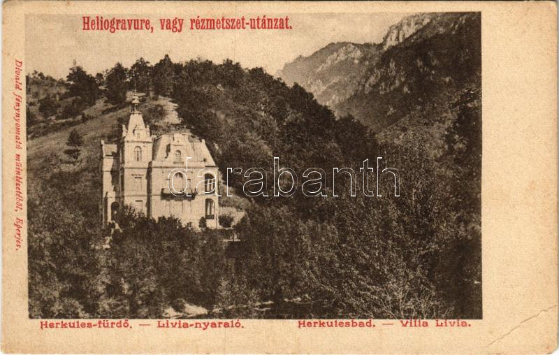 Herkulesfürdő, Baile Herculane; Lívia nyaraló. Divald fénynyomatú műintézetéből. Heliogravure, vagy rézmetszet-utánzat / villa, spa (r)