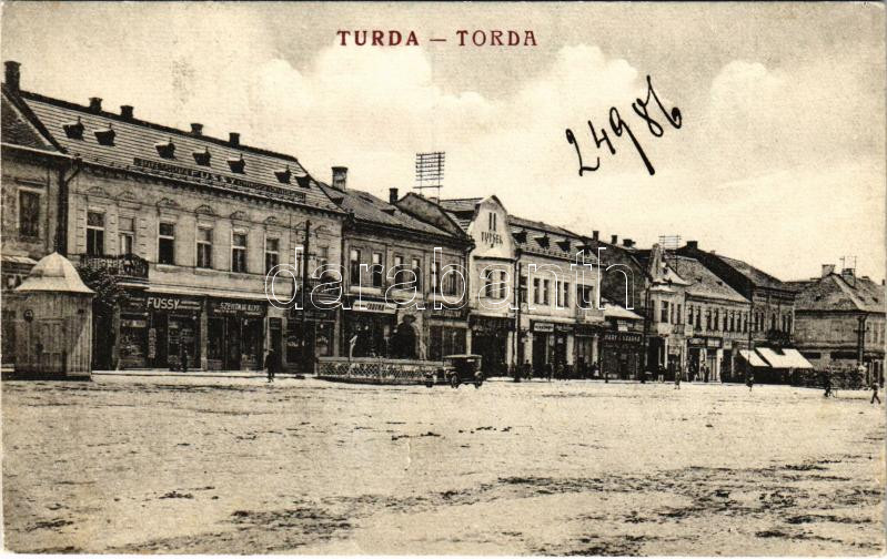 Torda, Turda; tér, Szentkirályi, Füssy üzlete és saját kiadása / square, publisher's shop (r)
