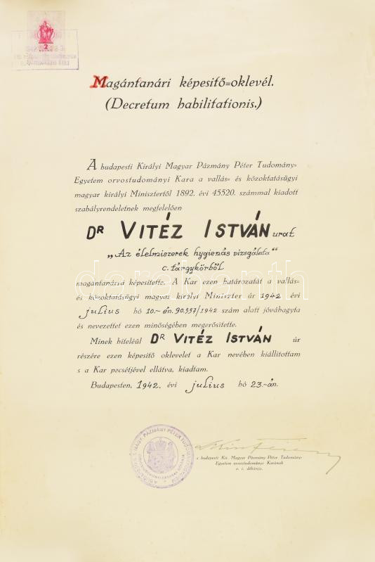 1946 2 db gyógyszerész diploma Vitéz István névre, plusz hozzá néhány ...