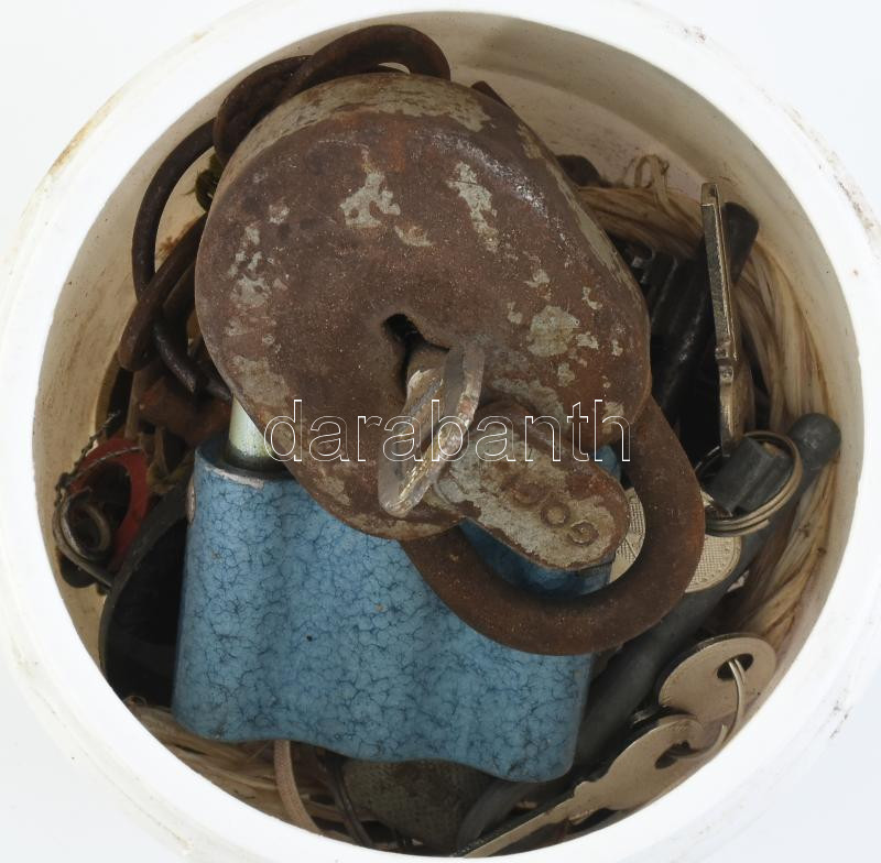 Régi kulcsok, lakatok, egy doboznyi
