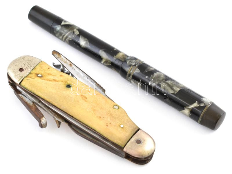 Signature bakelit töltőtoll + fa nyelű bicska