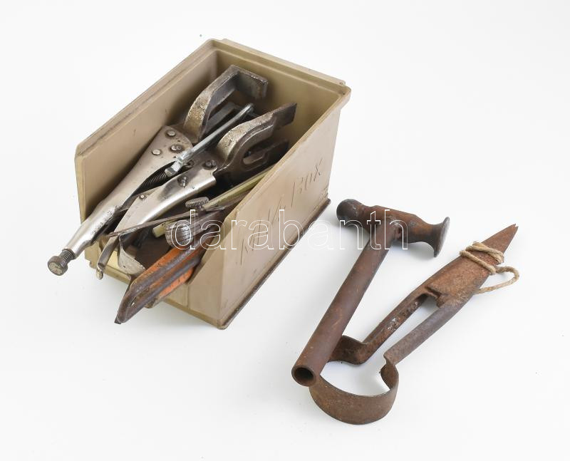 https://www.darabanth.com/en/438-Online-auction/438.0/Art-and-other-collectibles/Flea-Market~500014/Vegyes-regi-szerszamok-furok-kalapacsok-fogok-Rugo-osszenyomo~II2860454