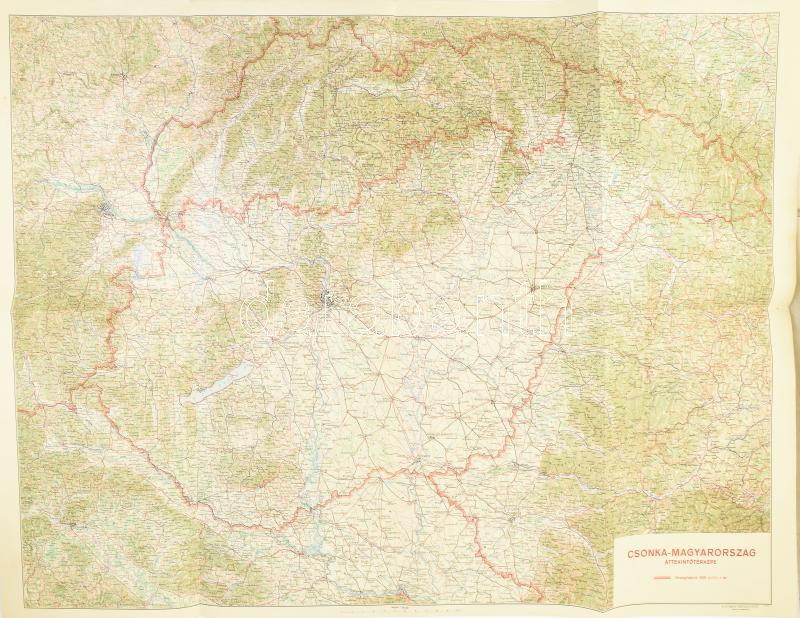 Description: 1939 Csonka-Magyarország áttekintő térképe, rajta a visszatért Felvidékkel és Kárpátaljával, 1:750.000, Bp., M. Kir. Honvéd Térképészeti Intézet, a hátoldala kissé foltos, hajtott, de egyébként jó állapotban, 70x100 cm