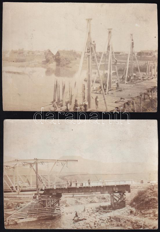 cca 1914-1918 Hídépítési munkálatok az I. világháború idején, 2 db fot...