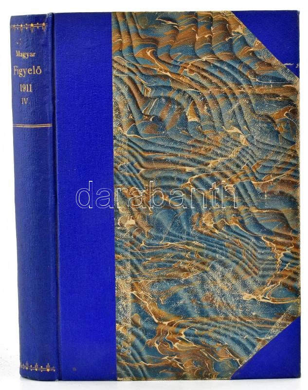 Description: 1911 Magyar Figyelő. A szerkesztőbizottság elnöke: Gróf Tisza István, a szerk. felelős Herczeg Ferenc. I. évf. IV. kötet. Bp., Singer és Wolfner. Félvászon-kötésben.