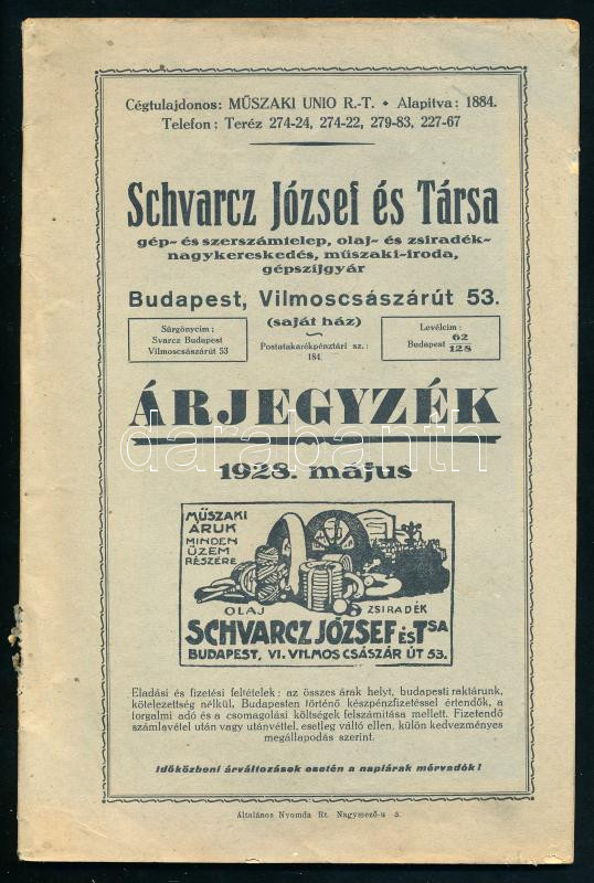 1928 Schvarcz József és Társa gép- és szerszámtelep, olaj- és zsiradék... https://www.darabanth.com/en/438-Online-auction/438.0/Art-and-other-collectibles/Printed-Materials~1000005/1928-Schvarcz-Jozsef-es-Tarsa-gep-es-szerszamtelep-olaj-es-zsiradek-nagykereskedes-mas~II2859966