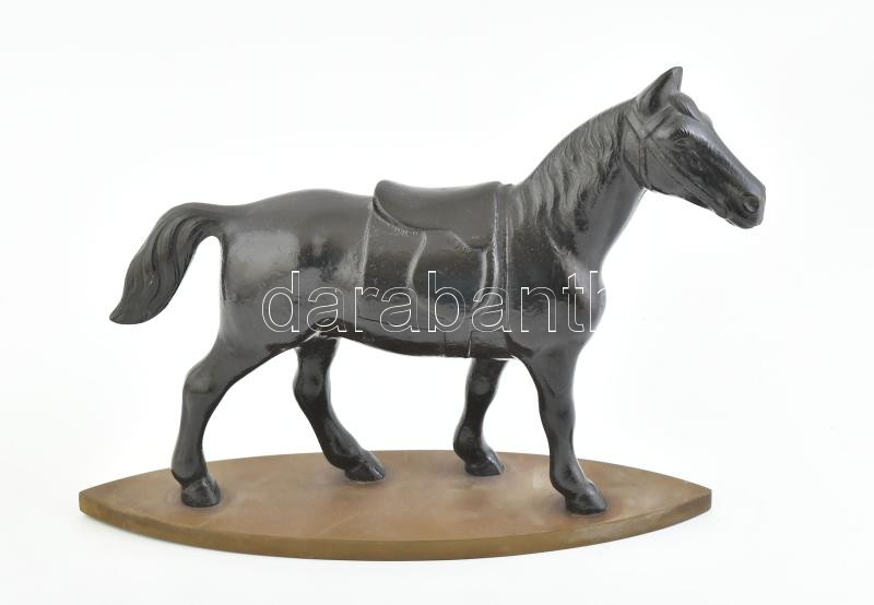 Epoxi ló figura, bakelit talapzaton, kopásnyomokkal, 28×23 cm