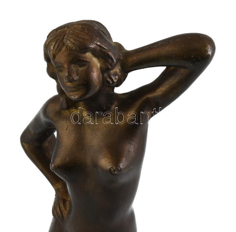 Jelzés nélkül: Lány akt. Bronz szobor, márvány alapon. 30 cm