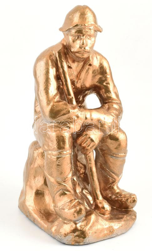 Ülő pásztor, gipsz szobor, jelzés nélkül, sérült, kopásnyomokkal, m: 29 cm