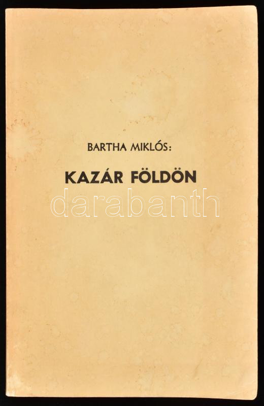 Bartha Miklós: Kazár földön. USA 1970: Turán bar áti kör emigráns kiadás. 150p. Kiadói papírkötésben