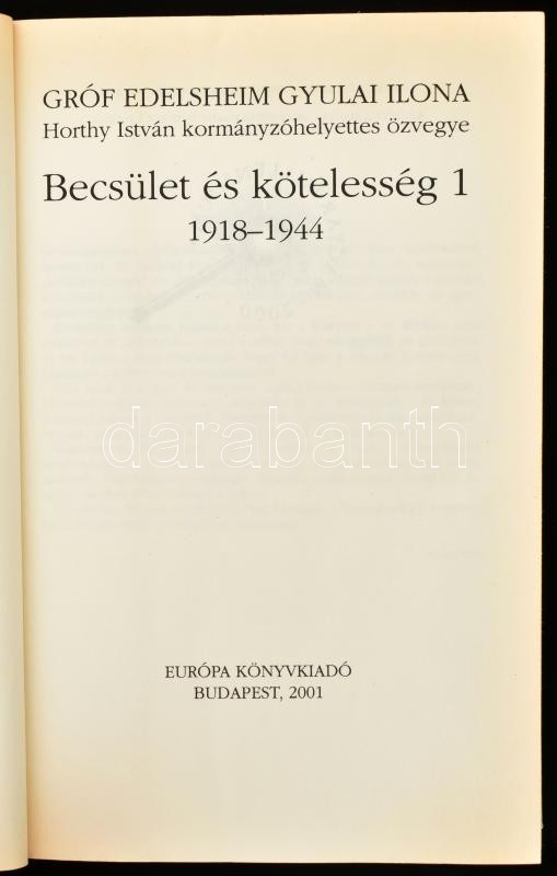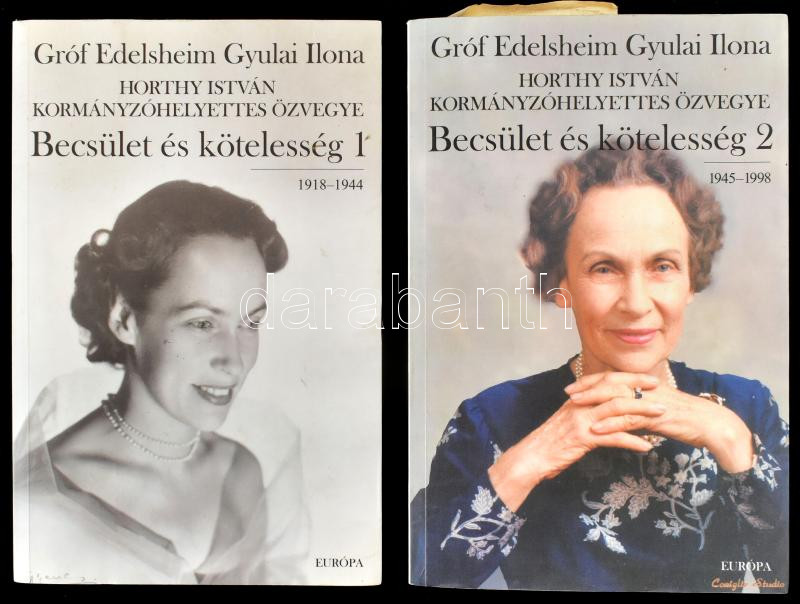 Gróf Edelsheim Gyulai Ilona, Horthy István kormányzóhelyettes özvegye: Becsület és kötelesség. 1-2. köt. Szerk.: Ocsovai Gábor. Bp., 2001, Európa. Kiadói papírkötés.