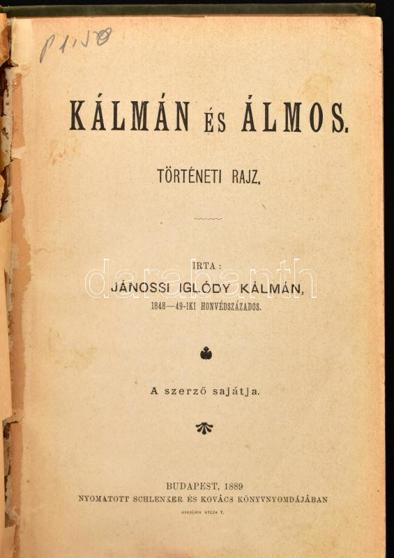 Iglódy Kálmán, jánossi - Kálmán és Álmos. Történeti rajz. Írta: 1848-4... https://www.darabanth.com/en/438-Online-auction/438.0/Books/Books-History~1000011/Iglody-Kalman-janossi-Kalman-es-Almos-Torteneti-rajz-Irta-1848-49-iki-honvedszaza~II2864352